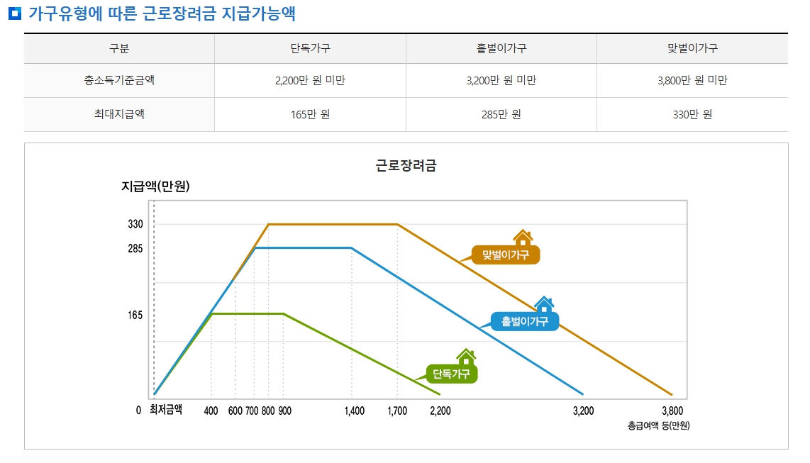 ✅ 가구유형에 따른 근로장려금 지급 금액