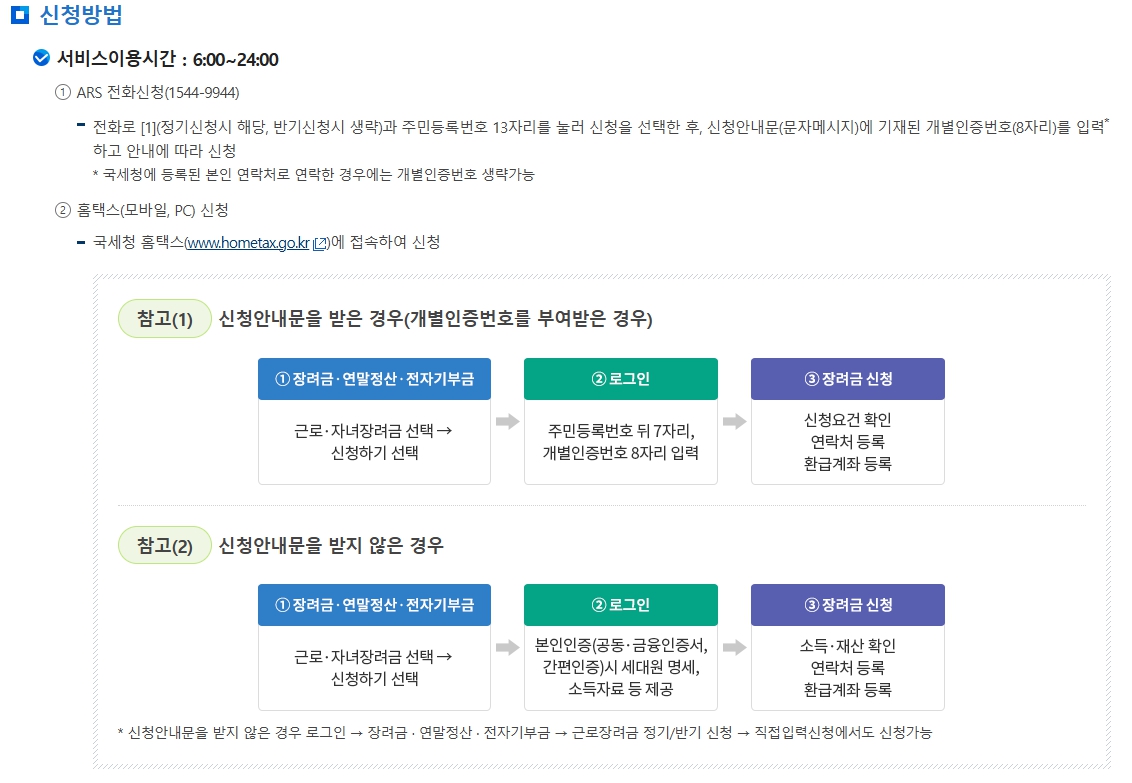 반기 신청은 근로소득자만 신청 가능하며, 상반기와 하반기로 나누어 지급됩니다.