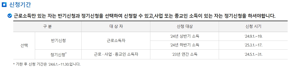 📢 반기 신청은 근로소득이 있는 사람만 가능하며, 자영업자는 해당되지 않습니다!